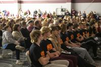 Cliff Williams / The Herald A small memorial for ECHS student Masen Goggins was created in the lobby of the school’s gym as it was used for a vigil service.