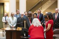 Cliff Williams / TPI Judge Bill Lewis posed for photographs after his investiture service for the Alabama Court of Civil Appeals Thursday.