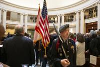 Cliff Williams / TPI The Wetumpka High School JROTC color guard waits to present the colors before Judge Bill Lewis took the oath of office.