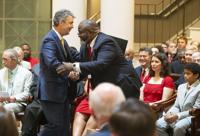 Cliff Williams / TPI Judge Bill Lewis, right, takes a photograph with state rep. Kenneth Pascal.