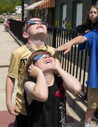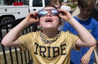 Cliff Williams / TPI Bo Winston, 8, took the afternoon off of school to witness the eclipse from downtown Wetumpka with glasses from the Wetumpka Impact Crater Discovery and Visitor Center. Winston said he thought the eclipse was small.