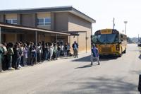 Cliff Williams / TPI Mark Kirsch pulls an Elmore County school bus at Millbrook Middle School last week.
