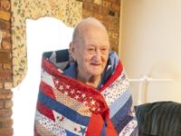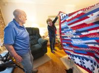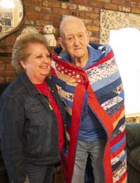 Cliff Williams / The Herald Redland resident and Korean War Veteran John Miller was given a quilt by Quilts of Valor volunteer Karen Daniels in Miller’s home Thursday.