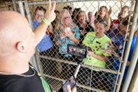 It’s not often you find people volunteering to be cramped into a kennel, threatened to be pied or slimed. But it was the case Saturday and all for a good cause.
