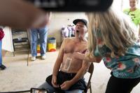 Cliff Williams / TPI Another volunteer stepped up for a waxing during the fundraiser.
