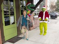 Cliff Williams / The Herald The Grinch surprises a customer leaving The Gab Salon Thursday as the business hosted an open house and customer appreciation day.