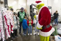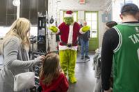 Cliff Williams / The Herald The Grinch tried to be friendly in The Gab Salon Thursday. Some children to him while others were a little unsure.