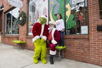 Cliff Williams / The Herald The Grinch and Santa take a photo with a customer at The Gab Thursday. The event was an open house and customer appreciation day at The Gab.
