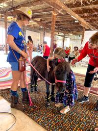 Submitted / The Herald Betty Stricker brought her tiny horse Ms. Molly to a recent summer reading program at the Eclectic Public Library. The programs have been hosted across the street at the Eclectic Warehouse. The programs have attracted adults to the traditional children’s program.
