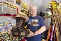 Cliff Williams / The Herald Wetumpka artist John Perdue poses with his creation of his friend Don Sawyer. The bust includes marbles for eyes.