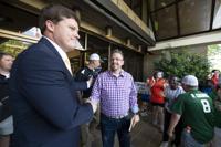 Cliff Williams / The Herald Wetumpka city attorney Justin Edwards announces to Parents and players of the Wetumpka Youth Baseball and Softball League gathered outside of the Wetumpka City Hall that a mutual agreement to play ball had been made.