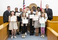 Cliff Williams / TPI Elmore County students pose with Judges Ben Baxley, left, and Patrick Pinkston left after being recognized in the Character in Action celebration.