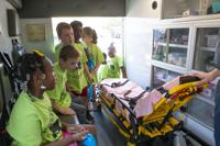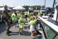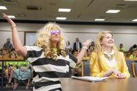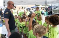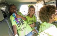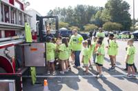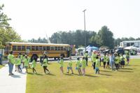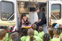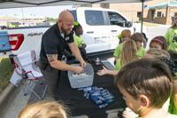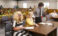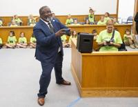 Cliff Williams / TPI Desirae Lewis-Jackson, left, questions Mom E. Bear about her porridge as Judge Bill Lewis and Elmore County second graders sit on the bench during a mock trial at Law Day.