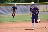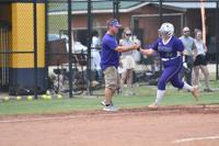 [Dalton Middleton/The Herald] Chloe Baynes rounds the bases in the team’s area tournament. Baynes had the highest batting average in the county as she hit .678 her senior season.