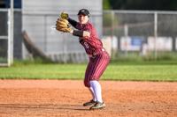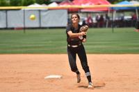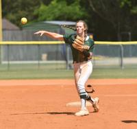 [Dalton Middleton/The Herald] Belle Haynes attempts to throw a runner out at first base. Haynes finished her high school career with 306 total hits and 232 RBIs.