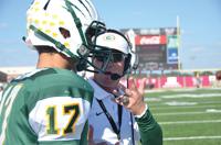 Edgewood Academy head football coach Bobby Carr discusses a play with quarterback Ryan Bottoms during last season’s Class AA state championship game versus Marengo Academy at Veterans Memorial Stadium at Troy University. Photo by Cory Diaz