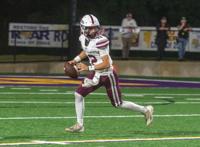 Ana Sofia Meyer / TPI Elmore County quarterback Gage Davis scrambles to get a pass off against Tallassee.