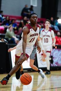 Payton Stephenson dribbles down the court at an AHSAA basketball game between the Stanhope Elmore Mustangs and the Elmore County Panthers at Stanhope Elmore High School in Millbrook, Alabama on Thursday, Dec. 2, 2021. [Jake Arthur/ Tallapoosa Publishers]