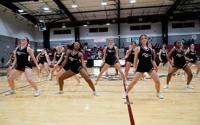 Stanhope Elmore cheerleaders dance at an AHSAA basketball game between the Stanhope Elmore Mustangs and the Elmore County Panthers at Stanhope Elmore High School in Millbrook, Alabama on Thursday, Dec. 2, 2021. [Jake Arthur/ Tallapoosa Publishers]