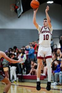 Cole Downey shoots a basket at an AHSAA basketball game between the Stanhope Elmore Mustangs and the Elmore County Panthers at Stanhope Elmore High School in Millbrook, Alabama on Thursday, Dec. 2, 2021. [Jake Arthur/ Tallapoosa Publishers]