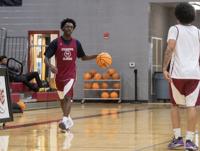 Stanhope Elmore guard Kaleb Sanders takes the ball down the court in a Friday afternoon intersquad scrimmage as the Mustangs prepare for the intensity of the basketball season.