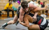 Brian Tannehill Wetumpkas TJ Anthony attempts to pin his opponent Thursday night.