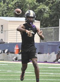 Ana Sofia Meyer / TPI Wetumpka quarterback Kymani whips the ball out to his receiver at Tallassee's 7-on-7 tournament on Tuesday.