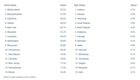 The analysis was conducted by Construction Coverage—a research publication focused on the construction industry—using data from the Federal Highway Administration. For more details and complete results, see the original post, U.S. States With the Worst Roads.