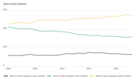 The share of roads in good condition has increased steadily