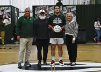 Ana Sofia Meyer / TPI Edgewood Academy senior Brock Whitt receieves a ceremonial ball to honor his surpassing 1,000 career points.